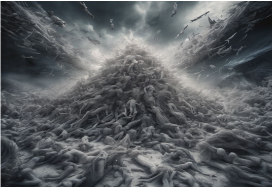 Poco se recomienda hacer uso de las líneas formadas por aquellas almas que, una tras otra, esperan por siglos su turno para comunicarse con los vivos, puesto que además de muy largas —¡infinitas!— en ocasiones la impaciencia y la desesperación provocan grandes avalanchas por lo que hay riesgo de enterrar nuevamente al alma buscada según muestra la ilustración siguiente: